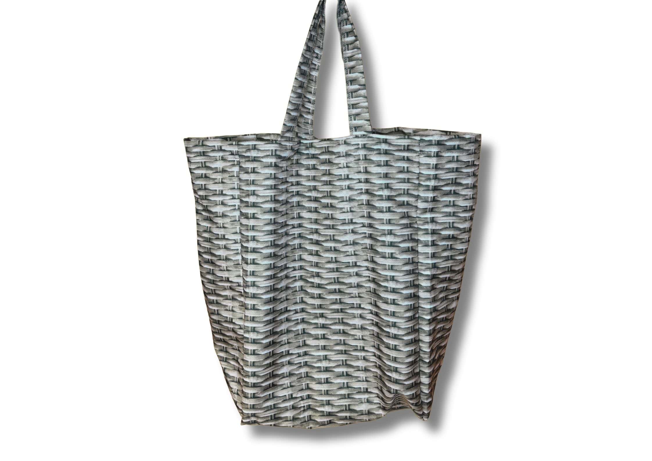Pagamintas Lietuvoje iš storesnio, patvaraus 100% PE audinio, jis išsiskiria ypatingai realistiška pintos faktūros imitacija, kuri vizualiai primena pintą krepšį, tačiau yra lengvas, lankstus ir praktiškas kasdieniam naudojimui. Tai puikus pasirinkimas tiek pirkiniams, tiek kelionėms, tiek daiktų susidėjimui namuose ar darbe.